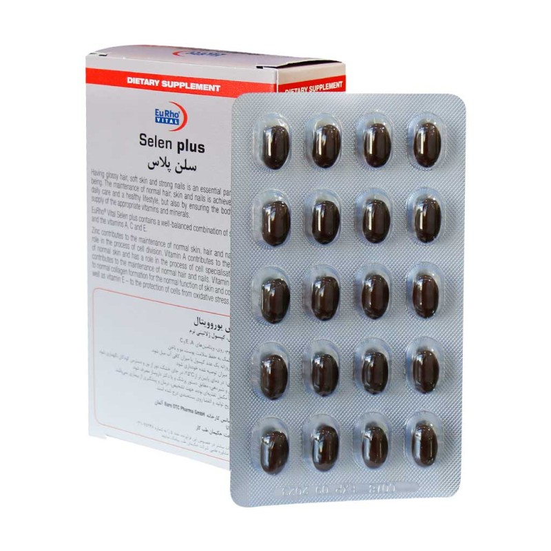 کپسول سلن پلاس یوروویتال (Eurho Vital Selen Plus) ساخت آلمان و یک مکمل عالی برای تأمین سلنیوم و چندین ریزمغذی دیگر است که سطح سلامتی عمومی فرد را بهبود میبخشد. قرص سلنیوم برای حفظ سلامت سیستم قلب و عروق ، تنظیم هورمونهای تیروئیدی و حفظ سلامت پوست و مو بسیار مفید است. آنتی اکسیدانهای موجود در این کپسول از ابتلا به بیماری مزمن و انواع سرطانها جلوگیری کرده و سیستم ایمنی بدن را تقویت میکنند. با خرید قرص سلن پلاس میتوانید از خواص بینظیر آن برای ارتقاء سطح سلامتی خودتان بهرهمند شوید.