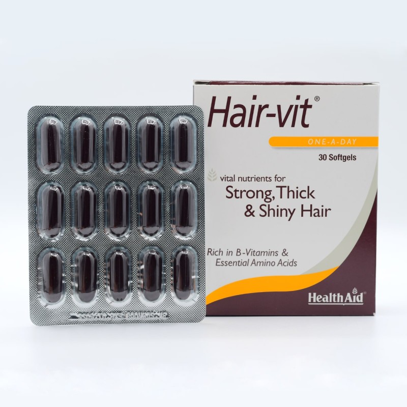کپسول هیرویت هلث اید، حاوی مجموعه ای از ویتامین های گروه B و اسیدهای آمینه ضروری است. مصرف این مکمل باعث جلوگیری از ریزش مو، بهبود بافت و افزایش ضخامت مو شده و همچنین سبب بهبود رنگ و درخشندگی مو نیز میشود و در تأمین سلامت مو بسیار مؤثر عمل میکند. ترکیبات موجود در این محصول به صورت مستقیم و یا غیرمستقیم نقش خود را در سلامت مو ایفا کرده اند. قرص هیرویت برای مراقبت بهینه از موهای شما تهیه شده است و محتوی ضروری ترین ویتامینها و مینرالها بوده و برای آقایان و خانمها در هر سنی مناسب است. Hair VIt فاقد هر گونه ماده نگهدارنده، طعم دهنده و گلوتن بوده و 100% گیاهی است